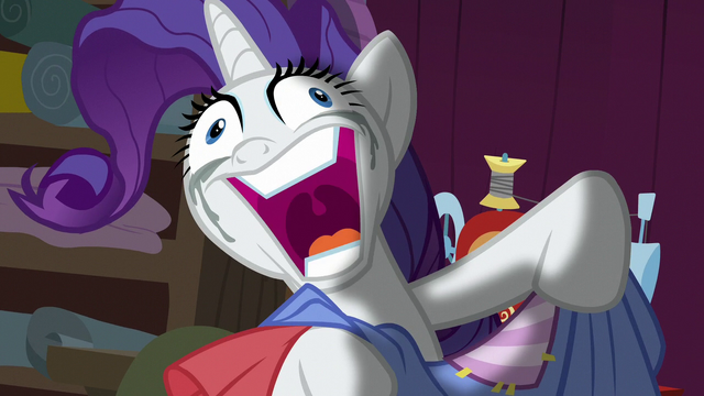 So why do they work, unlike this, this, this, or THIS? Because of who the source of the joke is. As Rarihoard hogged onto more and more stuff, the more obsessed she became. Her faces accentuated her lust for anything, especially when she caught eye of Applejack's wagon, an immediate trove of treasures. Similar to Return of Harmony, comedy is plentiful in The Mean 6, Rarity's deranged faces a source of it.