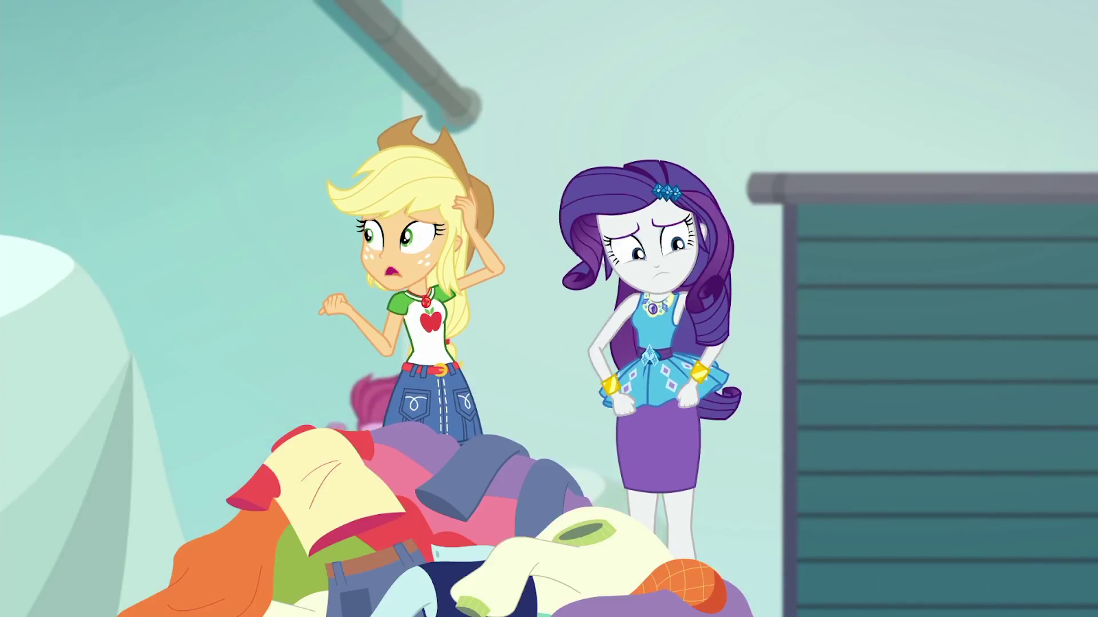In all fairness, many of the things this new series does were first seen in those musical "Summertime Shorts." For all their simiplicity, those offered catchy songs which expanded on these characters, pushing them in directions which are different from their pony counterparts while still being recognizable. "Monday Blues" shows Sunset and Twilight's home lives, whereas "Shake Things Up" and "Coinky-Dink World" give Applejack and Pinkie, respectively, part-time jobs which are noticeably different from those of the pony versions of these characters. Much more than even the Equestria Girls movies, these shorts began to establish how these characters live their daily lives, and how they fit into the world around them.