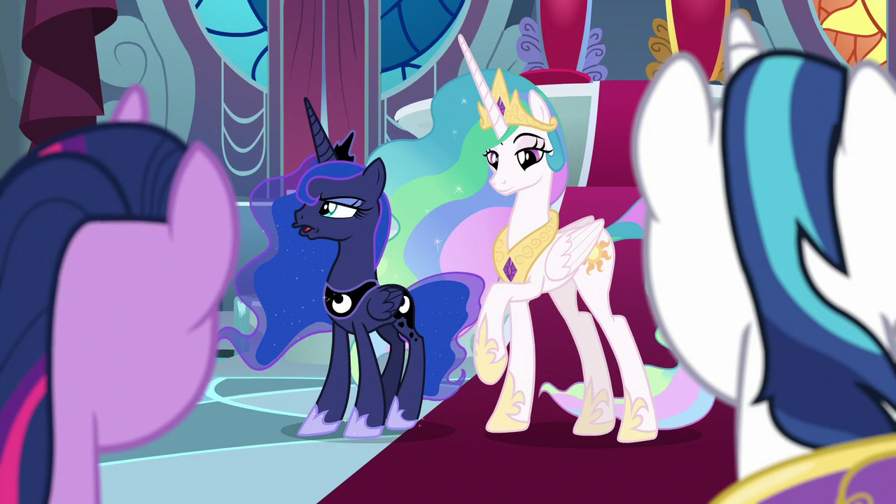 - Recall the first bit of foreshadowing mentioned a few paragraphs ago. Celestia and Luna share very strong differences of opinions of Shining Armor's security. Celly really liked it, but Luna was unsure and, as stated in Act 1, wanted to test it with her, but she chose to summon Twilight instead. Everyone was so caught up that they overlooked its fatal flaw: They're so focused on outside threats they overlook inside ones. Spike quickly realized it, and observing how Luna and Celly couldn't stop nonverbal arguments with each other, he concocted an inside plan with Luna to prove it to everyone. And boy, did they take serious advantage!