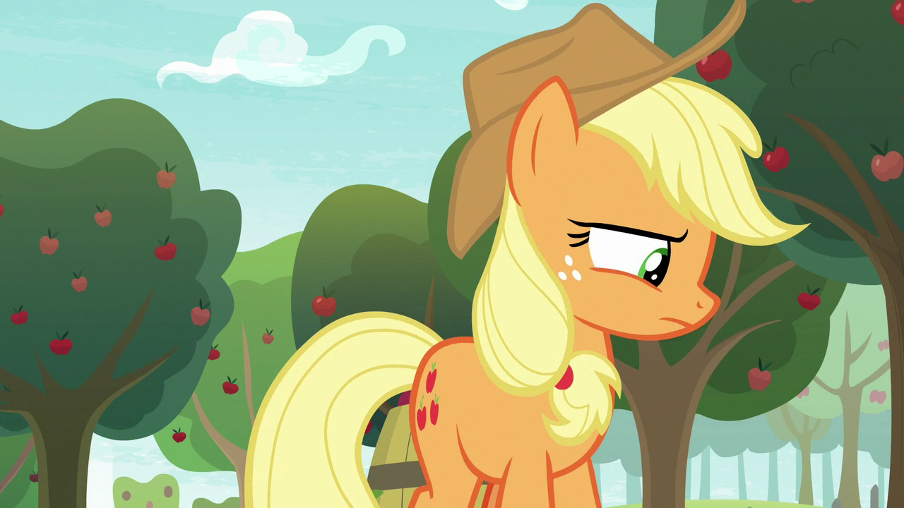 Applejack: [voiceover] And missed out on helpin' with the harvest because I was chasin' somethin' for little foals. I felt guilty everypony else had to work harder because of me. So I decided right then and there I was too old to waste any more time on Great Seedlin'.
