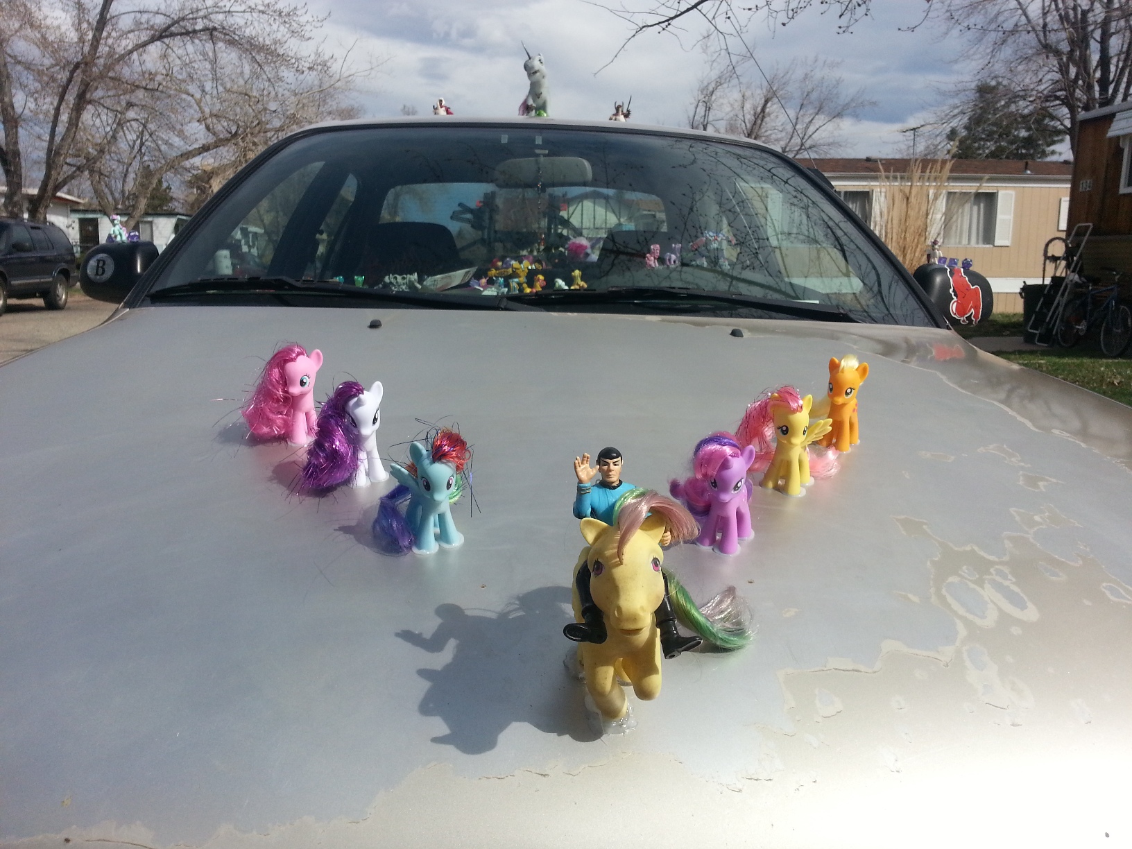 This is the Pony Express. I decided that I'd rather see my toys all the time rather than having them sit on the shelf gathering dust. My car brings a lot of smiles, and the occasional weird look, from fellow travelers thus making me smile in return. It's a win win!