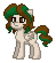 A big, tan pegasus with brown eyes, brown and green curly hair, and a turtle wearing sunglasses as a Cutie Mark.