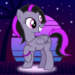 I made mine completelly self. I used a screenshot of Pumpkin Cake in her adult form from the shows finale as the base for the vector of my OC Dark Rose and added a selfmade synthwave orientated background to the vector.