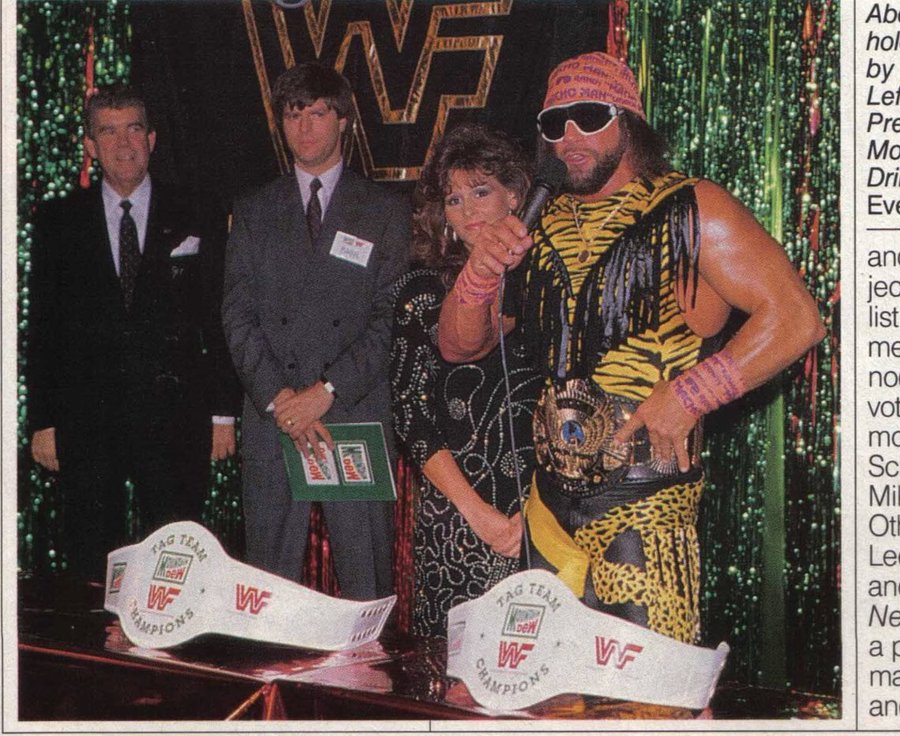 Randy Savage and Jack Tunney: Your WWF Mountain Dew tag team champions of the world!