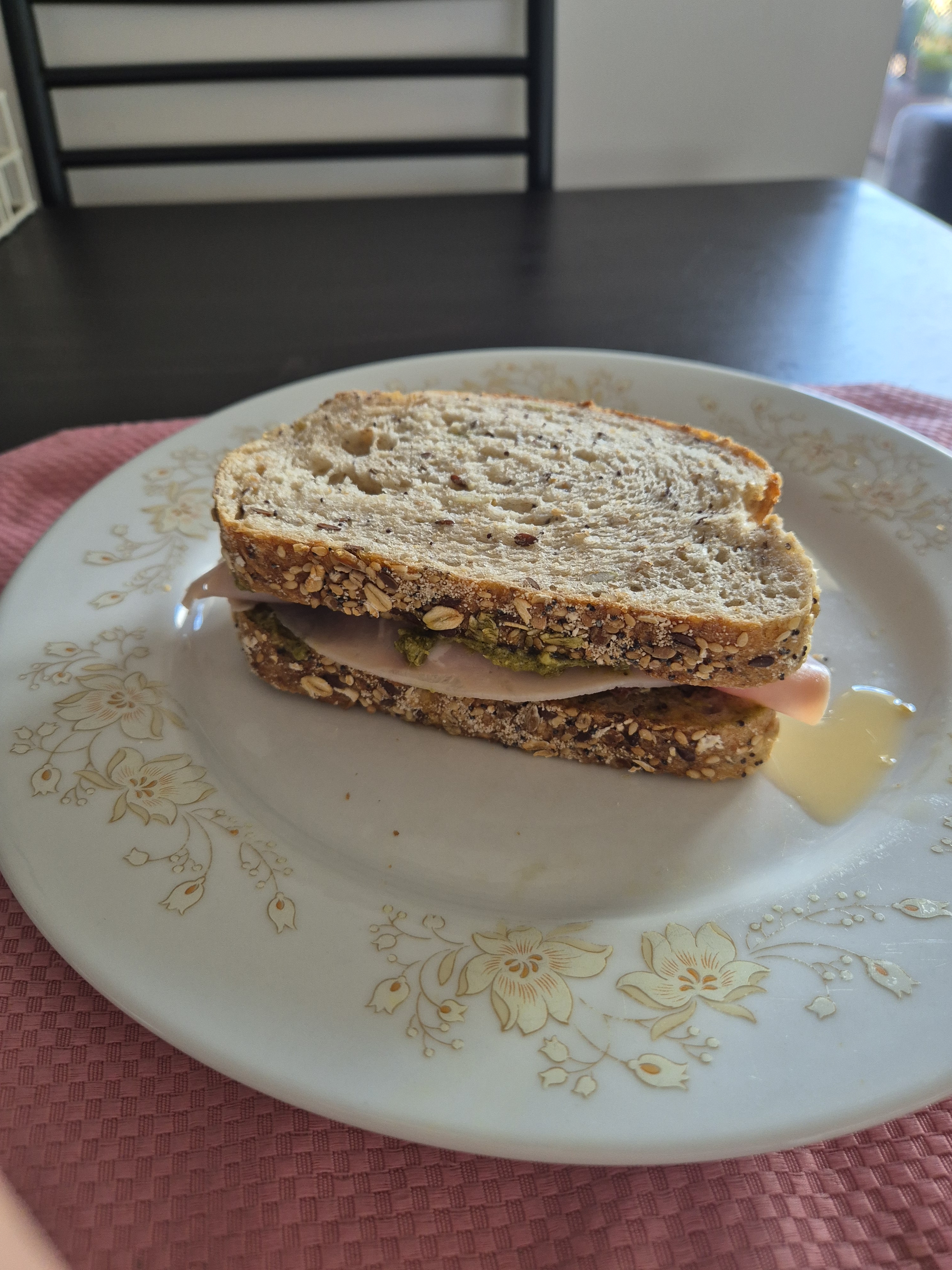 Just a sandwich with ham, basil pesto and sundried tomatoes