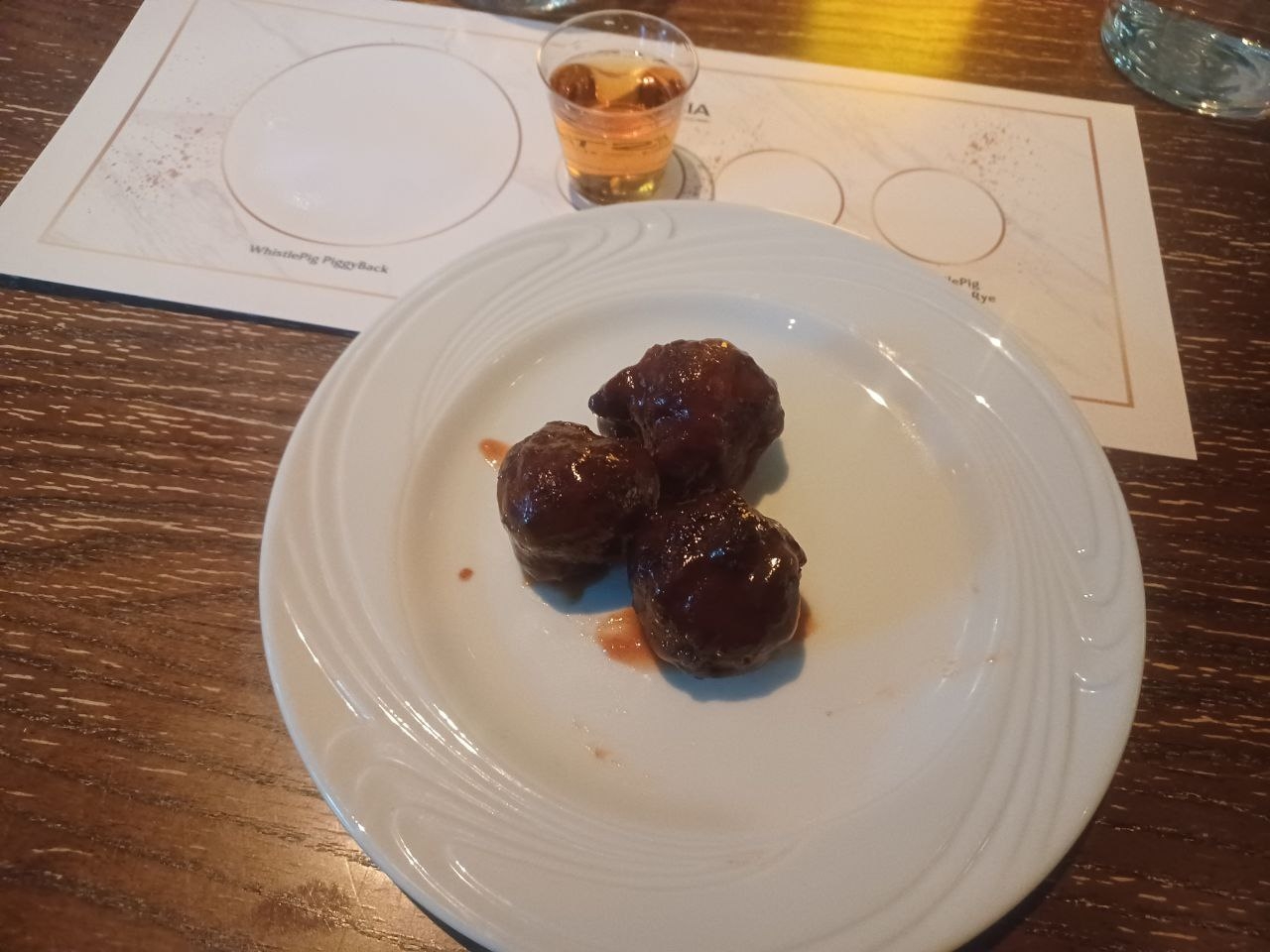 • Prime Beef BBQ meatballs in smoky hickory bourbon sauce