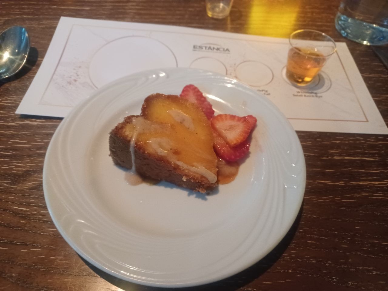 • Bolo de Fuba (a Brazilian cornmeal cake with banana cream and salted caramel bourbon sauce)