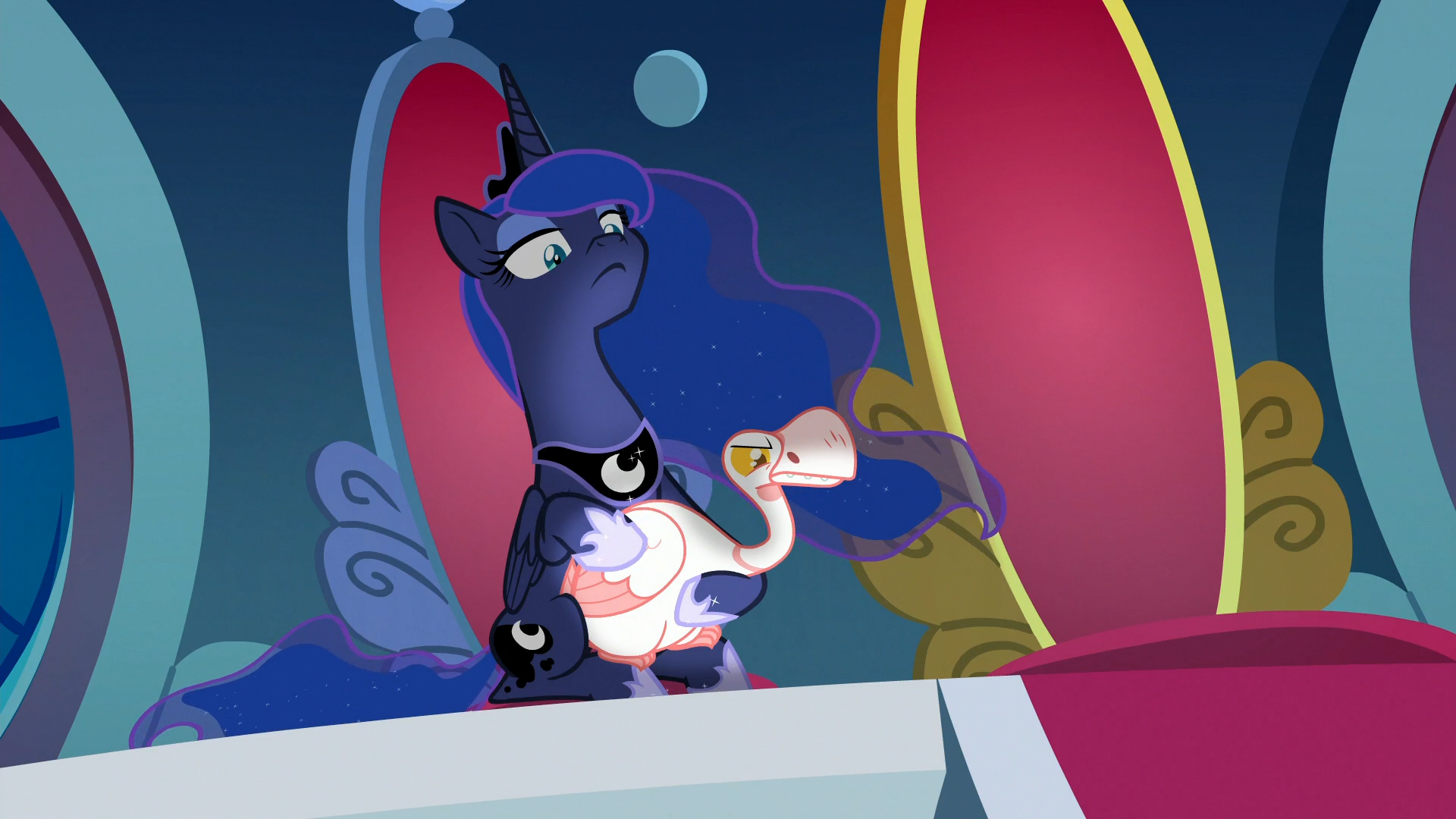 Princess Luna and Princess Celestia both have pursed, pronounced poutuses, that protrude profoundly, as only princesses possibly could.