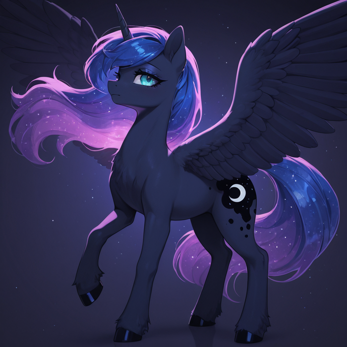 Silly Druid 8,253 April 9, 2023 Author Share April 9, 2023 (edited) It's hard to get a good picture with two characters in it. Here, Starlight's eye color is not quite right, and the layout of Sunset's hooves is a little strange, but still it's the best I could get. Also it shows the AI's tendency to put things on the picture that correspond to a pony's name, in this case there is sunset in the background only because there is Sunset Shimmer on the picture. Edited April 9, 2023 by Silly Druid Link to comment Share on other sites More sharing options...