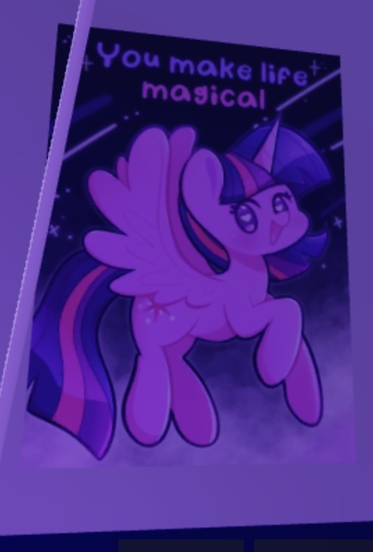Lnx1ynight16 2,061 Saturday at 11:46 PM Share Saturday at 11:46 PM I was playing a sensory room game on Roblox when I saw that it had so many MLP stuff. Let me show you! Yeah! It has so many MLP stuff, mostly from g4 and g5. I love this game. It’s very calming and also has MLP in it and as a MLP fan, it makes me love this game even more <333 btw the game is called angel's sensory room. 3 2 Link to comment Share on other sites More sharing options...