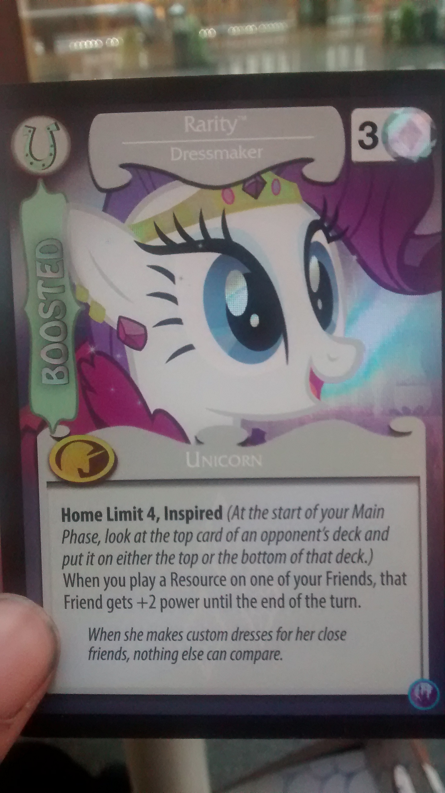 Trust me, this guy had a Rarity cutie mark tattoo! Oh yeah, I also went to a CCG game and I bought the Canterlot nights Rarity deck!