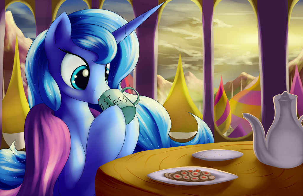 Each time I take a glance at this picture my  imagination suggests me that it is scroll from Alex. I am not surprised by that Blue Princess's reaction but that ecstasy in the White Princess' eyes?:mlp_confused::D *shrugs* I am afraid I will never understand mares.^_^