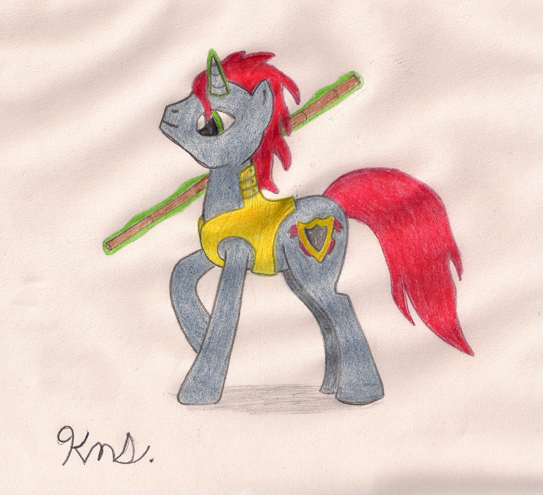 My first pony drawing was of my OC/Ponysona Gallantry. Took me nearly two days, but I think I did pretty well don't you think?
